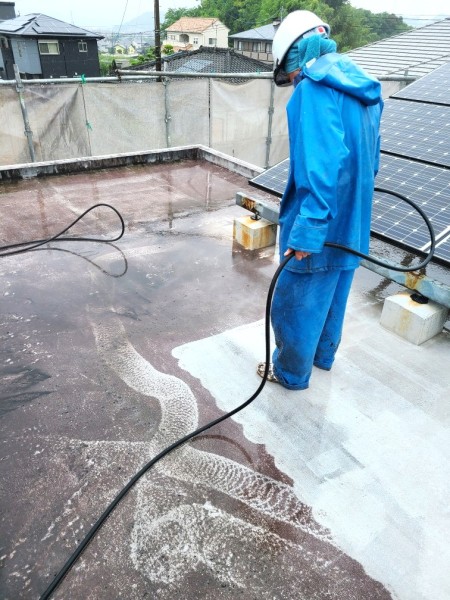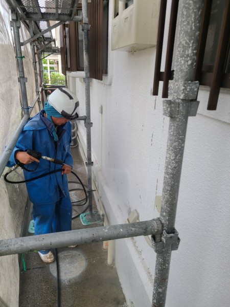 まずは、高圧洗浄で長年の汚れやホコリなどをきれいに洗い流し、