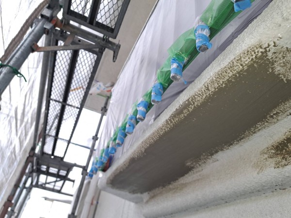 外壁の塗膜剥がれをカチオンフィラーで補修しました。