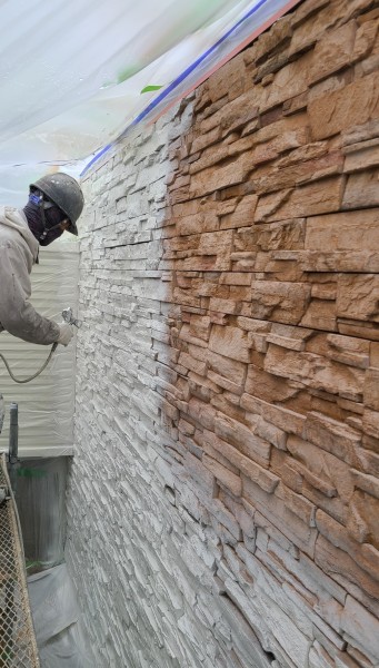 ◆熊本県菊池郡 店舗改装工事のため外壁の吹付け塗装を行いました。